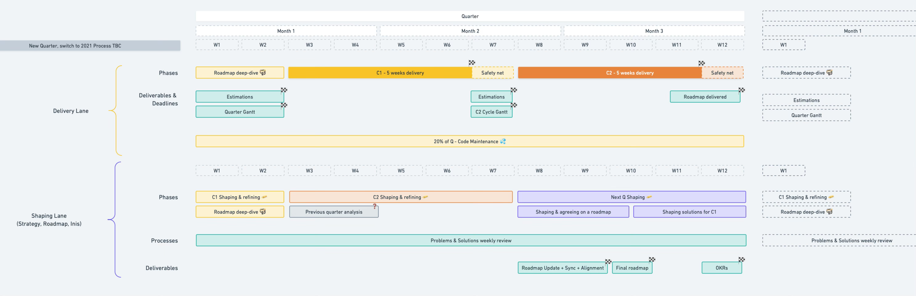 It took me some time to research alternative ways of running a product org while simultaneously putting out fires. I met with product/team leaders, re-read some of my books and eventually came across Shape Up by Ryan Singer and 37signals. It was enlightening and quite an emotional experience. It felt as if all the answers were there.